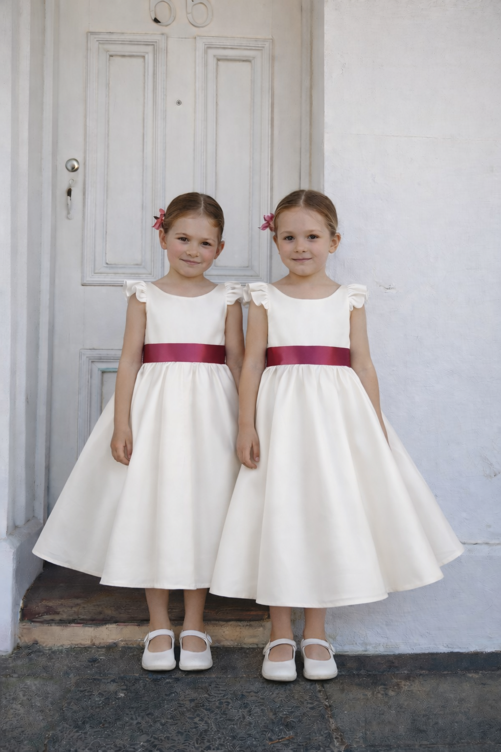 Vestido de Criança Filipa em Cetim – Laço e Cinto Personalizável