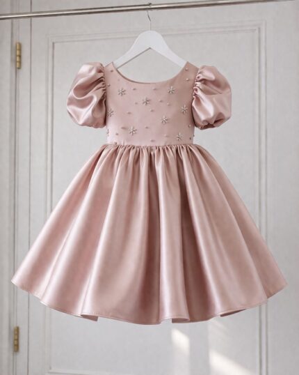 Vestido de Criança Juliana em Cetim – Laço Personalizável